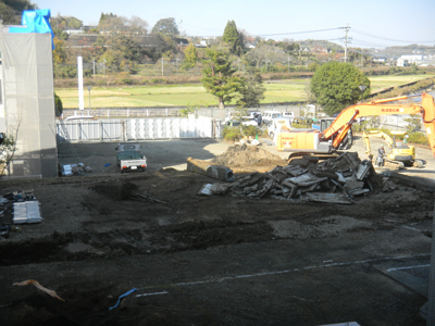 | 薬学部入り口から新棟を望む | |
